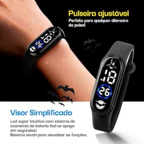 Relógio Infantil Digital Estilo Bracelete Orizom Kids Batman Preto Surpreenda seu pequeno com o incrível Relógio Infantil Digital Orizom Kids com temática do Batman. Este relógio foi projetado especialmente para crianças e adolescentes, combinando estilo, praticidade e a figura icônica do herói Batman. Design Moderno: Relógio digital no estilo bracelete, ideal para o uso diário. Seu design discreto e todo preto é perfeito para os fãs do Batman, proporcionando um visual moderno e divertido. Temática Batman: Este modelo exclusivo apresenta uma temática inspirada no Batman, com elementos que remetem ao herói, tornando-o um acessório desejado por crianças e adolescentes.Pulseira Ajustável: Fabricado com uma pulseira de silicone ajustável, o relógio se adapta perfeitamente a qualquer tamanho de pulso, garantindo conforto durante o uso.Resistente à Água: O Relógio Orizom Kids é à prova d'água, proporcionando segurança e durabilidade, mesmo durante atividades aquáticas ou em dias chuvosos.Qualidade Premium: Produto de alta qualidade, feito com materiais resistentes e duradouros, garantindo um uso prolongado e satisfatório.Inclui Caixa Personalizada Batman: Este relógio vem acompanhado de uma caixa personalizada do Batman, ideal para armazenar o relógio com segurança. A caixa também serve como um elemento crucial para presentear, tornando-o o presente perfeito para o Dia das Crianças ou para qualquer ocasião especial.Demonstre carinho e cuidado ao escolher este presente, que não só é funcional, mas também cheio de estilo e personalidade. Adquira agora o Relógio Infantil Digital Orizom Kids com temática Batman e presenteie seu pequeno com um acessório que reflete sua paixão por super-heróis, enquanto proporciona qualidade e conforto no dia a dia. Este é o presente ideal para o Dia das Crianças!