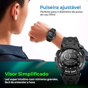 - Funções: Exibe a hora de forma clara e precisa, com iluminação de LED para facilitar a visualização em ambientes escuros