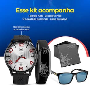 Kit Orizom Spaceman Homem-Aranha - Aventure-se com Estilo!- 1 Relógio Orizom Spaceman Temático Homem-Aranha com Pulseira em Silicone Ajustável- 1 Relógio Digital Orizom Kids Temático Homem-Aranha em Formato de Bracelete Ajustável de Silicone- 1 Óculos de Sol Orizom Kids Temáticos Homem-Aranha com Proteção UV- 1 Caixa Premium Orizom Kids Temática Homem-AranhaChegou o Kit Orizom Spaceman do Homem-Aranha perfeito para os pequenos fãs do herói aracnídeo! Com relógios e óculos temáticos, seu filho estará pronto para enfrentar qualquer desafio com muito estilo.Com design moderno e ajustável, os relógios Orizom são uma declaração de estilo e farão seu pequeno se sentir verdadeiramente especial. Além disso, os óculos de sol oferecem proteção UV para brincadeiras ao ar livre com toda a segurança necessária.Entre no mundo do Homem-Aranha com este emocionante kit, perfeito para ação, aventura e, é claro, muito estilo! Prepare-se para surpreender o seu pequeno herói com este incrível kit.Indicado para crianças acima de 9 anosAdquira já o Kit Orizom Spaceman Homem-Aranha e proporcione momentos de diversão e aventura para o seu filho!