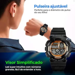 RELÓGIO DIGITAL INFANTIL ORIZOM KIDSIMPORTANTE: DETALHES INTERNOS DO RELOGIO, COMO DESIGNER DOS NUMEROS, PODEM VARIAR DE ACORDO COM DISPONIBILIDADE EM ESTOQUE, BEM COMO A COR DA LUZ DE LED PODE VARIAR PRA AZUL OU VERMELHO!Marca: OrizomModelo: KidsCor: Preto com detalhes em rosé (podendo ser enviado com detalhes em dourado)Mostrador: Digital, com números grandes para fácil leituraPulseira: Feita em silicone ajustável, garantindo conforto e um ajuste seguroFunções: Exibe a hora com precisão e possui luz de LED para facilitar a visualização em ambientes escurosCaracterísticas: Leve, resistente e confortável, ideal para o dia a dia de crianças ativasCAIXA ULTRA PREMIUM ORIZOM KIDS - TEMA FOGUETE- Temática: Foguete, inspirada na linha "Pequeno Astronauta" da Orizom Kids- Finalidade: Acomoda o relógio com segurança e elegância, sendo uma excelente opção para presentear seu pequeno- Qualidade: Fabricada com materiais de alta qualidade, garantindo durabilidade e proteção para o relógioEste kit é perfeito para crianças e adolescentes que buscam um acessório estiloso para o dia a dia, seja na escola, nas brincadeiras ou em eventos especiais. A caixa com tema de foguete dá um toque criativo e divertido, tornando o presente ainda mais especial. Adquira já o Relógio Digital Orizom Kids e surpreenda seu pequeno astronauta com um presente único e cheio de estilo!