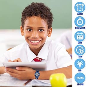 SETE CORES DE LUZ DE FUNDO: Use luzes LED coloridas importadas, basta pressionar o botão de luz de fundo à esquerda, você pode ver claramente a hora da noite. Azul escuro, verde, vermelho, azul celeste, laranja, rosa, roxo, essas sete cores de luz de fundo podem ser ajustadas quando você pressiona o botão de luz de fundo superior esquerdo por 3 segundos, isso pode satisfazer a curiosidade da criança.