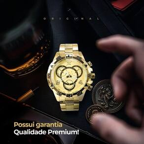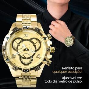 - Relógio Masculino Orizom Spaceman X, perfeito para presentear a pessoa amada. - Tipo: Analógico ponteiro , com formado redondo e cerca de 4,5 cm de diâmetro da caixa. - Cor: Dourado banhado, material em aço inoxidável. - Tampa blindada com arte exclusiva do modelo Spaceman X e todos os detalhes de autenticidade de um produto Orizom, incluindo número de série.
