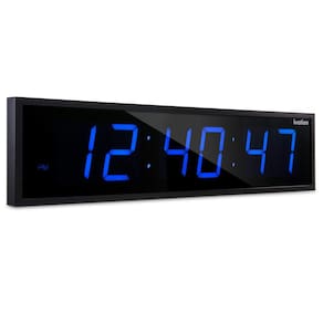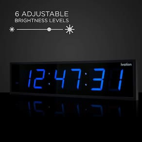 Ivation Relógio digital de LED grande grande grande - suporte de prateleira ou parede (76 cm de largura, azul) - Fácil de ler sob luz solar intensa como no escuro. - Muito conveniente para pessoas com deficiência visual, mostra claramente a hora, o minuto e os segundos. - Mostre o status AM/PM com uma luz embaixo das letras, não precisa adivinhar o que o ponto significa. - Não é necessário redefinir se perder energia. - Alimentado por adaptador CA (incluído).
