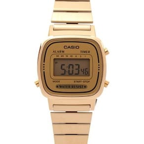 Direto da Vintage Collection vem um relógio que nunca sai de moda. Combina estilo com características é conhecida como uma luz LED, Temporizador e um segundo cronômetro 1 / 10th. Este relógio é o complemento perfeito para qualquer roupa. Recursos Cronômetro de 1/100 de segundo Alarme Iluminador em LED À prova d'água Pulseira de aço inoxidável Design retrô popular Especificações Open Vidro com resina À Prova D'água Material do corpo/garra: Resina / Dourado Pulseira de Aço Inoxidável Fecho ajustável Luz LED Cronômetro de 1/100 de segundo Capacidade de medição: 59'59,99" Modos de medição: tempo transcorrido, divisão de tempo, tempos de 1º e 2º lugares Alarme diário Sinalização a cada hora Calendário automático (fevereiro com 28 dias) Formatos de 12/24 horas Horário regular: hora, minuto, segundo, pm (pós-meridiano), data, dia Precisão: ±30 segundos por mês Duração aproximada da bateria: 5 anos em CR1616 Tamanho da caixa:?33,5?×?28,6?×?8,6?mm Peso total: 36 g LED: Âmbar Garantia 12 meses Fornecedor Fabricante