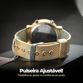 Relógio Digital Feminino Orizom Maria LED Dourado: - Qualidade Premium: Elegância e durabilidade em um só relógio - Material da Máquina: Aço Inoxidável para precisão e resistência - Pulseira Ajustável de Silicone: Confortável e adaptável ao seu pulso - Digital LED: Tecnologia moderna ao alcance do seu pulso - Gravação à Laser: Detalhes refinados e personalizados - Dimensões: Largura 4cm, Altura da Máquina 1cm, Comprimento 4,8cm