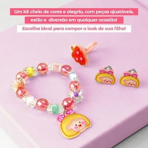 Chegou o Kit de Acessórios Infantis Orizom Kids, perfeito para presentear as crianças! Com tema de morango e rostinho de criança, este conjunto traz alegria e estilo para os pequenos a partir de 5 anos. O Relógio Infantil Digital LED Orizom Modelo Kids é super charmoso, com detalhes de morango, pulseira ajustável em silicone e uma pedrinha de strass. A pulseira com pingente em forma de rosto de criança adiciona um toque encantador, enquanto o par de presilhas temáticas e o anel universal completam o conjunto, oferecendo ainda mais charme e diversão para o dia a dia. Não deixe de presentear com esse kit que une qualidade, conforto e diversão em acessórios pensados especialmente para as crianças. Aproveite e adquira já o seu!