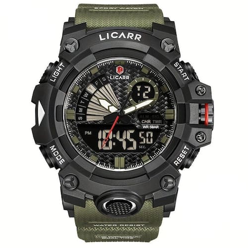 Especificações: [Material do Estojo] Construído a partir de resina sintética robusta, o estojo do relógio é sinônimo de resistência e estilo duradouro. Suas propriedades garantem um visual sofisticado enquanto suportam o desgaste diário. [Desempenho Resistente] Com resistência à água de até 5 ATM, este relógio é o companheiro ideal para atividades ao ar livre, desde uma corrida sob chuva até um mergulho. Faça muito mais sem se preocupar. [Design Esportivo] Os materiais de borracha e resina complementam um design esportivo e moderno, pensado para aventuras urbanas e atividades intensas. Versátil e estiloso, adapta-se a diferentes estilos de vida. [Movimento Precisão] Equipado com movimento de quartzo, este relógio oferece precisão inigualável e confiabilidade, garantindo que você nunca perca uma batida ou compromisso importante. [Dual Display] Tecnicamente avançado, o duplo modo de exibição eletrônica é um destaque inteligente, proporcionando acesso fácil e rápido às informações que você precisa, em qualquer situação.