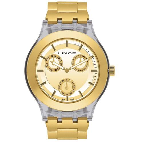 MARCA: Lince GÊNERO: Feminino COR DA CAIXA: Transparente COR DA PULSEIRA: Dourado ESTILO: Casual FORMATO DA CAIXA: Redondo ITENS INCLUSOS: Certificado de Garantia, Manual, Relógio MATERIAL DA CAIXA: Policarbonato MATERIAL DA PULSEIRA: Policarbonato RESISTENTE A ÁGUA: 3 ATM [+] saiba mais TECNOLOGIA / FUNÇÕES: Analógico, Multifuncional TIPO DE FECHO: Trava de Segurança:COMPRIMENTO DA PULSEIRA: 240 mm ESPESSURA: 10 mm TAMANHO DA CAIXA: 43 mm