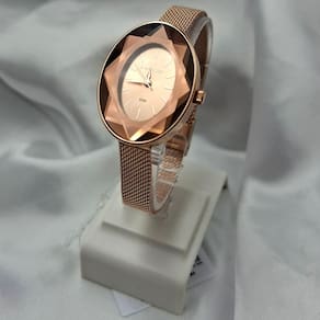 Características Formato do Relógio: Outros Composição do Vidro: Cristal mineral Material da Caixa: Aço Inox Cor da Caixa: Rosê Cor do mostrador: Rosê Material da Pulseira: Aço Inox Cor da Pulseira: Rosê Mecanismo: Analógico Quartz