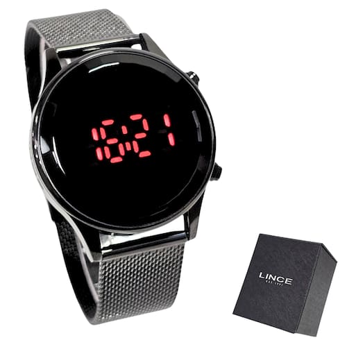 Marca: Lince Modelo: LDN4647L PXPX Tipo de relógio: Digital Gênero: Feminino Cor da caixa: Preto Cor da pulseira: Preto Estilo: Casual Alarme: Não Cronômetro: Não Calendário: Sim Luz: Sim – Led Vermelho Resistência à água: 5 ATM = 50 metros Tipo de fecho: Fivela de gancho Material da caixa: Aço Material da pulseira: Aço Características do vidro: Cristal mineral Tamanho da caixa: 37 mm Espessura da caixa: 10 mm Comprimento da pulseira: 22 cm Largura da pulseira: 18 mm Tampa do fundo: Pressão Peso: 70 Gramas Alimentação: Bateria Garantia do Fabricante: 12 meses Fabricante: Orient Relógios da Amazônia LTDA
