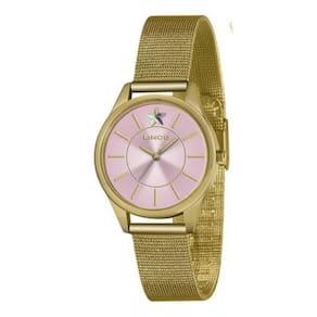 Marca: LinceGênero: FemininoVisor: Champanhe, Prata, Preto, RosaLinha: FunnyVidro: Cristal mineralFunções:Pressão: 50mCaracterísticas: com caixa Dourado e pulseira em AçoDiâmetro da Caixa: 36 mm Marca: Lince