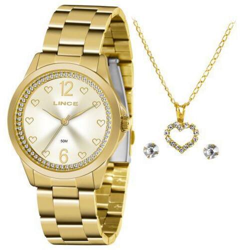 Relógio Lince Feminino LRGJ121LKY83C1KX Dourado Todo o estilo e design moderno da Lince esta~o presentes nesse no Relógio Feminino Lince LRGJ121LKY83C1KX. produzido pela Orient Relógios com materiais resistentes e de qualidade que dão sofisticação e charme, compondo perfeitamente o seu estilo Descrição do Relógio Marca = Lince Modelo = LRGJ121LKY83C1KX Genero = Feminino Mostrador = Dourado Caixa = Dourado Mecanismo = ógico Coroa = Botão Fundo = Pressão Resistência à água = 5 ATM Lavar a Mão / Chuva / Piscina Vidro = Cristal Mineral Peso = 100 gramas Material da caixa = Metal Material da pulseira = Aço Inox Diâmetro da caixa = 38 mm Diâmetro do visor = 33 mm Espessura da caixa = 11 mm Largura da pulseira = 20 mm Comprimento da Pulseira = 20 cm Fecho = Trava e Botão Fabricante = Orient Relógios da Amazônia LTDA = de 1 Ano direto com Fabricante Conteúdo da embalagem: 01 Relógio de pulso 01 Estojo Autêntico Manual em português Cerificado de do Fabricante Eletrônica Marca: Não Informado Ean: 7891529196045
