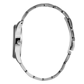 Os marcadores de horas em formato aplicado e os numerais arábicos estrategicamente posicionados oferecem ótima leitura das horas, enquanto os ponteiros finos reforçam o estilo minimalista do modelo. O conjunto resulta em um relógio versátil, capaz de complementar desde produções casuais até looks mais elegantes.