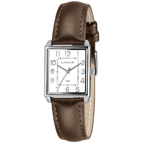 Caixa: Metal Pulseira: Couro Ecológico Marrom Medida da caixa: 25 mm x 28 mm Vidro: Cristal Mineral Resistência à água: 50m Funções: Analógico Mostrador Branco com todos os números Fundo de Pressão Alimentação do maquinário: Bateria Maquinário Japonês