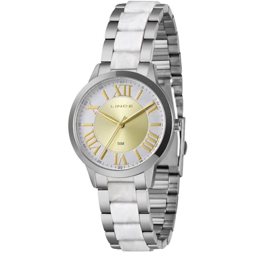 Mostrador champanhe com algarismos romanos e detalhe branco