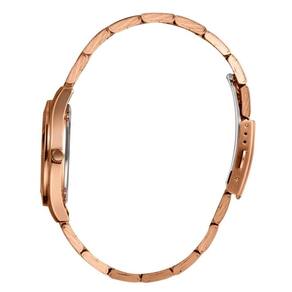 A pulseira em aço rosé proporciona conforto e durabilidade, enquanto o mecanismo de quartzo garante precisão no funcionamento. Com resistência à água de até 50 metros, o modelo também oferece praticidade e segurança para o uso cotidiano.