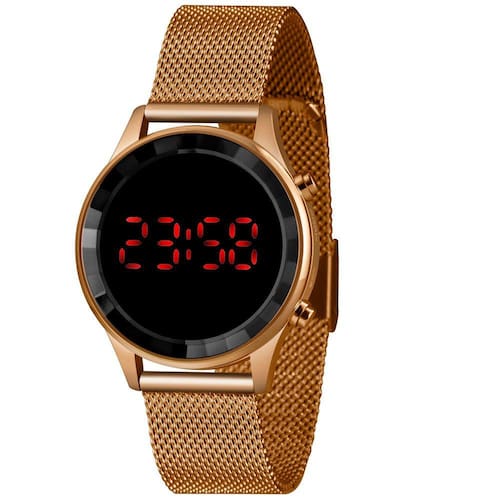 Marca: Lince Gênero: Feminino Visor: Led Vermelho Linha: Led Vidro: Cristal mineral Funções: Calendário Pressão: 50 M Características: com caixa Rosegold e pulseira Aço Tipo Mesh Diâmetro da Caixa: 37 mm