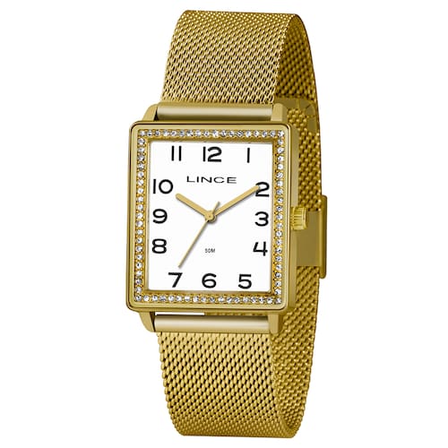 - Material da pulseira: Aço Dourado tipo esteira / mash