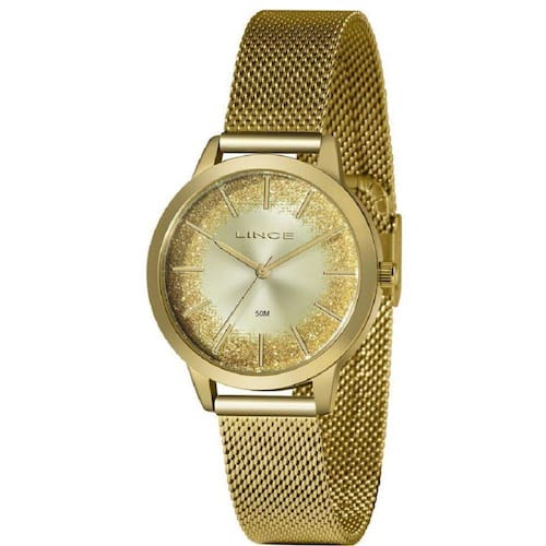 Marca: Lince Gênero: Feminino Visor: Champanhe e Preto Linha: Urban Vidro: Cristal Mineral Funções: Pressão: 50M Características: com caixa Dourada e pulseira em Aço tipo Mesh Diâmetro da Caixa: 36mm