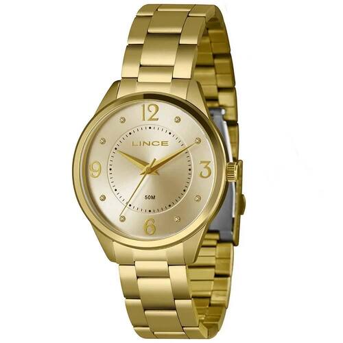 Relógios Lince se notabilizando pela concepção e construção de artigos com qualidade e beleza. Marca: lince Gênero: feminino Vidro: cristal mineral Resiste à água: 5ATM Visor: dourado Caixa: Metal Pulseira: pulseira em aço dourado Marca: Não Informado