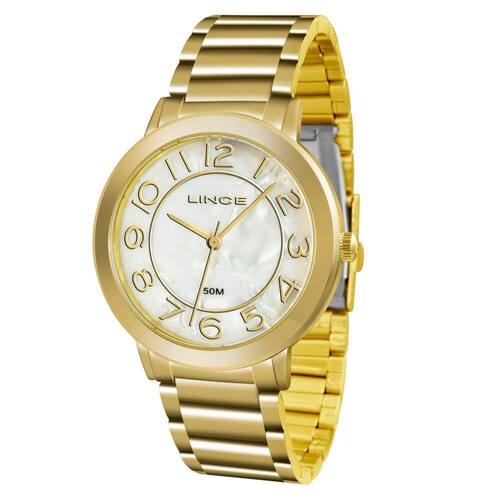 Relógio feminino com sistema analógico com ponteiros indicando as horas, minutos e segundos. Caixa em metal com vidro em cristal mineral, possui indicadores numerosos, pino para ajuste de horas. Pulseira em aço trabalhado com fechamento por fivela de pressão.