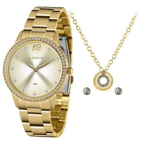 Marca: Lince Gênero: Feminino Visor: Champanhe, Prata Linha: Urban Vidro: Cristal mineral Funções: Pressão: 50m Características: com caixa Dourado e pulseira em Aço Diâmetro da Caixa: 40 mm