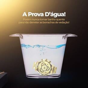 Conjunto Exclusivo: Relógio à Prova D'água Dourado, Caixa Orizom Spaceman Exclusiva e Cordão Dourado Grande e Robusto com Pingente de Cruz