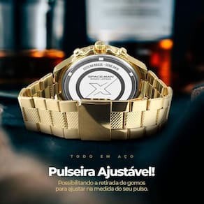 Surpreenda com este incrível kit de presente Orizom Spaceman X O relógio masculino possui um design arrojado, com detalhes exclusivos e tampa blindada, garantindo a autenticidade do produto. A corrente, o pingente e a pulseira grumet, todos dourados, complementam o estilo sofisticado. Além disso, a caixa premium Orizom Spaceman X é perfeita para presentear e guardar os acessórios. Demonstre seu amor e carinho no Dia dos Namorados ou em qualquer ocasião especial com este kit excepcional. Adquira já o seu
