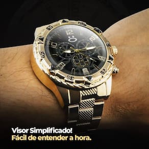 Adicione um toque de elegância ao seu visual diário com o Relógio Analógico Masculino Orizom Spaceman. Este relógio todo dourado, com fundo preto, é feito com alta qualidade para garantir sofisticação em todos os momentos.