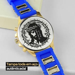 Detalhes do Produto: - Relógio Masculino Orizom Spaceman Tipo: Analógico Modelo: Spaceman Qualidade: Premium Material: Maquinário em aço inoxidável banhado a ouro, oferecendo durabilidade e um visual refinado Formato: Redondo Mostrador: Azul profundo, com detalhes internos como s e desenhos que podem variar conforme a montagem no ato da compra Pulseira: Silicone azul ajustável, adaptável a qualquer dimensão de pulso para máximo conforto Tampa: Blindada com arte exclusiva de Jesus Cristo, conferindo autenticidade e simbolismo ao relógio