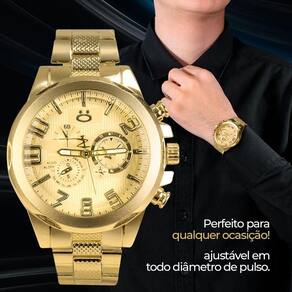 Este relógio banhado dourado da linha Orizom Spaceman é a escolha perfeita para homens que apreciam sofisticação e durabilidade em seus acessórios. Sua construção robusta em aço inoxidável garante alta qualidade e resistência.