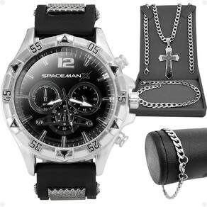 Kit Especial Orizom Spaceman X para Presentear Quem Você Ama!Surpreenda aquela pessoa especial em sua vida com este kit exclusivo, composto por:- Relógio Analógico Masculino Orizom Spaceman X: Elegante e sofisticado, este relógio é mais do que um acessório, é uma declaração de estilo para o homem moderno.- Cordão em Aço Inoxidável Grumet: Robusto e elegante, perfeito para complementar qualquer visual masculino.- Pingente em Aço Inoxidável em Formato de Crucifixo: Uma peça significativa e simbólica que traz consigo uma mensagem de fé e proteção.- Pulseira em Aço Inoxidável: Adicione um toque de estilo ao pulso do homem moderno com esta pulseira clássica.Este Kit Especial Orizom Spaceman X é o presente ideal para demonstrar todo o seu carinho e amor pela pessoa especial em sua vida. Surpreenda e encante com este conjunto único e significativo! Aproveite para presentear com estilo e sofisticação!