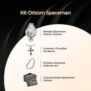 Kit Relógio Orizom Spaceman Aço Inox + Corrente + Pingente Pai Nosso + Pulseira!- Adicione elegância ao seu visual com o Relógio Analógico Masculino todo em prata da Orizom Spaceman, feito em aço inoxidável de alta qualidade.- Complemente o relógio com a Corrente em aço inoxidável de 60cm, adicionando um toque moderno e sofisticado ao seu estilo.- Transmita um significado especial e espiritualidade com o Pingente grande em forma de crucifixo com "Pai Nosso" gravado a laser de 4cm.- Realce o seu visual com a Pulseira em aço inoxidável prata estilo grumet de 21cm, completando o conjunto com um toque de estilo.- Garanta proteção e elegância ao guardar ou presentear este kit exclusivo com a Caixa premium Orizom Spaceman fornecida.Este kit oferece uma combinação perfeita de estilo, qualidade e significado, tornando-se um presente memorável para diversas ocasiões. Adquira já o seu e surpreenda-se!