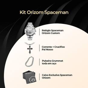 Kit Relógio Orizom Spaceman Aço Inox + Corrente + Pingente Pai Nosso + Pulseira