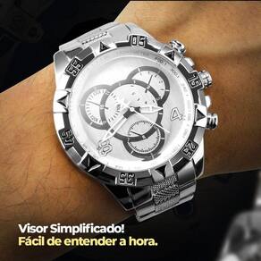 Este relógio não é apenas um acessório funcional; é uma declaração de estilo e resistência. Com um design prateado refinado, este relógio à prova d'água destaca-se pela combinação de elegância e durabilidade, tornando-o um presente ideal para quem você ama.