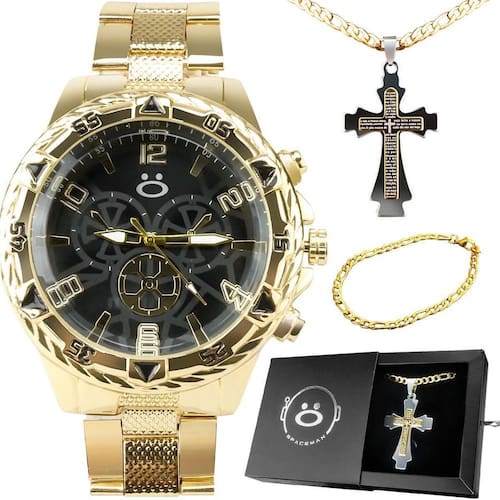 Relógio Orizom Spaceman Dourado - Elegância Infinita: - Estilo: Analógico - Material: Aço Inoxidável Banhado a Ouro - Design: Inspirado no Cosmos - Resistência à Água: Ideal para o dia a dia