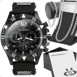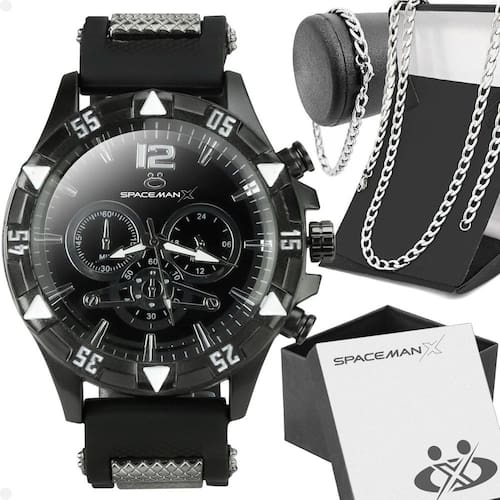 Kit Especial Orizom Spaceman X para Presentear Quem Você Ama!!O kit exclusivo é perfeito para surpreender aquela pessoa especial em sua vida. Composto por:- 1 Relógio Analógico Masculino Orizom Spaceman X: Apresenta um maquinário em aço inoxidável com pintura eletrostática preta (black piano), combinado com um mostrador preto elegante e fácil de ler. A pulseira em silicone ajustável garante um ajuste confortável em qualquer pulso. Este relógio é mais do que um acessório, é uma declaração de estilo e sofisticação para o homem moderno.- 1 Cordão em Aço Inoxidável Grumet: Este cordão robusto é feito de aço inoxidável de alta qualidade e possui aproximadamente 60cm de comprimento. Seu design grumet é elegante e masculino, perfeito para complementar qualquer look casual ou formal.- 1 Pulseira em Aço Inoxidável: Esta pulseira de aproximadamente 21cm é feita de aço inoxidável durável e apresenta um design clássico e versátil. É o acessório perfeito para adicionar um toque de estilo ao pulso do homem moderno.- 1 Caixa Premium Orizom Spaceman X: Acompanha uma caixa premium para acomodar tanto o relógio quanto os acessórios, garantindo uma apresentação elegante e sofisticada ao presente.Surpreenda e encante com este Kit Especial Orizom Spaceman X - é o presente ideal para demonstrar todo o seu carinho e amor!