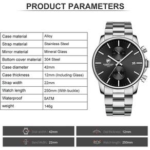Características: Marca: Cheetah Modelo: 1604 Categoria: Analógico Estilo: Fashion e Casual Movimento: Quartzo Cronógrafo: Ponteiros funcionais Calendário: Sim Diâmetro da caixa visor : 42 mm Espessura da caixa visor : 12 mm Tamanho da pulseira: 250 mm Incluindo o fecho Largura da pulseira: 22 mm Tipo de fecho: Borboleta Material do Visor: Vidro Mineral Material da caixa: Metal Material da pulseira: Aço inoxidável Peso liquido: Cerca de 146g Alimentação: Bateria Resistente à Água: 5ATM : 03 Meses Conteúdo da Embalagem: - Relógio - Manual de instruções em inglês - Certificado internacional de originalidade Marca: Não Informado Ean: 6012507595501