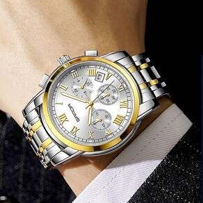 Relogio Masculino Analógico De Luxo Em Aço Inoxidavel Luminoso A Prova Dagua