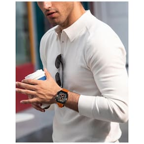 Marca, vendedor ou nome da coleção TSAR BOMBA Número do modelo TB 8204SGLZHX Número da peça TB 8204SGLZHX Ano modelo 2021 Formato do Item Tonneau Tipo de material da janela de discagem Cristal de safira Tipo de exibição Analógico Fecho Fivela Material do caso Aço inoxidável Diâmetro da caixa 50,50 centímetros Espessura da caixa 16,8 milímetros Material da banda Silicone Tamanho da banda Padrão masculino Largura da banda 22 milímetros Cor da faixa Preto Cor de discagem Preto Material da moldura Aço inoxidável Função do bisel Exibição de 12 horas Calendário Data Características especiais Cronógrafo, luminoso, resistente a choques Movimento Quartzo Japonês Profundidade resistente à água 50 metros Marca: Não Informado