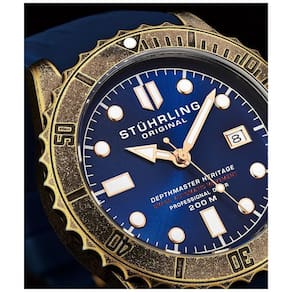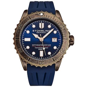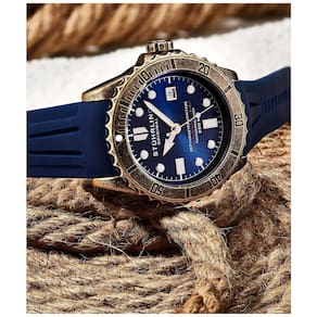 Embarque em uma nova jornada com o Heritage Diver. Uma luneta giratória e ponteiros luminosos se destacarão em um mar de relógios impressionantes. E o movimento automático suíço garante que você está dentro do prazo, sempre. Aproveite ao máximo o seu tempo com o movimento automático do Heritage Diver. Uma luneta giratória em tom de cobre, coroa rosqueada e ponteiros luminosos irão diferenciá lo da multidão. Com uma faixa de borracha de silicone, o Heritage Diver abraçará seu pulso e acompanhará qualquer aventura