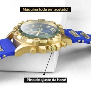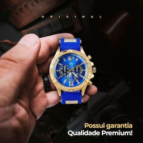 Mostrador: Azul profundo, com detalhes internos como números e desenhos que podem variar conforme a montagem no ato da compra