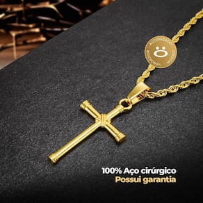 kit Elegante - Relógio, Cordão Baiano, Pingente Crucifixo e Pulseira Baiana