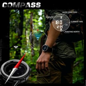 Especificações: [Design do Mostrador]: Numerais arábicos são estratégicamente posicionados para uma leitura fácil e moderna.[Medidas e Materiais]: Com um diâmetro de visor entre 45 e 49 mm e espessura do estojo de 12.6 mm, o formato arredondado oferece elegante harmonia, enquanto o material em fibra de carbono traduz uma durabilidade incomparável.[Funcionalidades Avançadas]: De cronômetro a cronógrafo, e com recursos como LED de fundo, data automática, alarme e uma bússola interna, este relógio é multifunção pura para aventuras urbanas ou selvagens.[Resistência à Água]: Surpreenda-se com a resistência à água de até 5 bar, perfeita para resistir a condições meteorológicas desafiadoras sem comprometer o estilo ou a funcionalidade.[Conforto e Estilo]: A pulseira em náilon, largura ajustável de 20 a 24 mm e comprimento de 26 cm, é sinônimo de conforto e perfeita adaptação ao pulso durante actividades intensas ou no dia a dia sofisticado.
