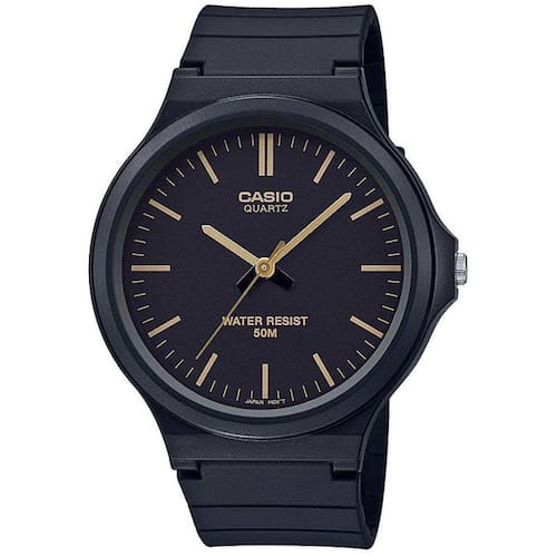 Características: Marca: Casio; Modelo: MW-240-1EVDF; Gênero: Masculino; Movimento: Quartzo; Material da Caixa: Resina; Cor da Caixa: Preto; Formato da Caixa: Redondo; Display/mostrador: Analógico; Ponteiros: Dourado; Possui Calendário: Sim; Material da Pulseira: Borracha; Cor da Pulseira: Preto; Tipo de Vidro: Acrílico; Resistência à Água: 5 ATM (50 metros); Permite Lavar as Mãos: Sim; Permite Respingos de Chuva: Sim; Permite Entrar na Piscina: Não; Permite Entrar No Mar: Não; Permite Nadar Com o Relógio: Não; Permite Usar No Banho Quente: Não; Diâmetro Da Caixa Sem Coroa Aprox.: 42mm; Diâmetro Da Caixa Com Coroa Aprox.: 44mm; Espessura da Caixa Aprox.: 9mm; Peso Aprox.: 35g;