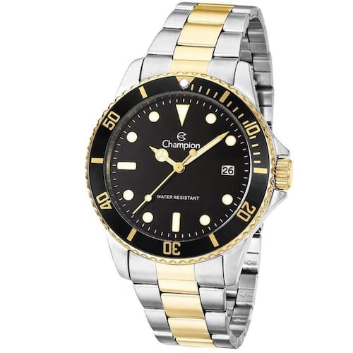 RELÓGIO CHAMPION CA31266P. Relógio analógico feito em aço na cor mista, com mostrador na cor preta, com calendário e resistente à água 50 metros (5 ATM).