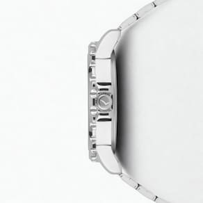 Descubra a força do lançamento de militar. Relógio de aro com marcação de minutos e mostrador com numeração completa, com pulseira em 3 links e banho prateado e mostrador na cor azul.
