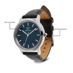 O Relógio Magnus 40mm da New Port, é a escolha ideal para homens que valorizam estilo, presença e autenticidade. Com pulseira em couro vegano preto de acabamento premium, ele traz conforto e durabilidade para o uso diário. Sua caixa em aço prata adiciona um toque de requinte, enquanto o fundo azul oferece um contraste moderno e sofisticado. Os ponteiros com brilho noturno garantem visibilidade em qualquer ambiente, sem perder a elegância.