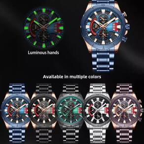 Recursos Que Impressionam: [Precisão Impecável] Experimente a confiabilidade de um movimento a quartzo de origem renomada, garantindo que você esteja sempre pontual e com a informação exata do tempo.[Durabilidade Robusta] Construído com liga de alta qualidade e pulseira em aço inoxidável, este relógio é feito para resistir ao uso diário, mantendo sua aparência e funcionalidade.[Versatilidade Incomparável] Seja para um evento formal de negócios ou um fim de semana relaxante, seu design elegante e casual se adapta a qualquer estilo e ocasião.[Funcionalidade Avançada] Desfrute de recursos como cronógrafo e calendário completo, além de ser à prova d'água, oferecendo praticidade e sofisticação em um único acessório.[Visibilidade Noturna] O mostrador luminoso garante que você possa verificar as horas com clareza mesmo em condições de pouca luz, adicionando conveniência ao seu dia e noite. Especificações Técnicas: CaracterísticaDetalheMovimentoQUARTZMaterial da PulseiraAço InoxidávelTipo de VisorHardlexFormato do EstojoRedondoMaterial do EstojoLigaProfundidade Resist.3BarComprimento da Banda23cmEspessura do Estojo14mmFechoBracelete de FechoRecursoLuminoso, Cronógrafo, Calendário Completo, À Prova D'águaOrigem do MovimentoJPBateria IncluídaSim Por que comprar isto?Adquirir este relógio de alta qualidade é um investimento inteligente no seu estilo e na sua rotina. A combinação de um design sofisticado, materiais premium e funcionalidades essenciais faz deste relógio de pulso o acessório perfeito para homens e mulheres que valorizam elegância e praticidade. Sinta-se confiante e preparado para qualquer situação, seja no ambiente profissional ou em momentos de lazer. Se você busca um relógio de aço inoxidável durável, preciso e com um toque de luxo casual, esta é a sua oportunidade. Não perca a chance de possuir um relógio quartzo que é sinônimo de bom gosto e confiabilidade. Compre agora e eleve o seu estilo a um novo patamar! ?