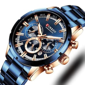 Relógio Curren Masculino Todo Funcional 8355 Azul e Dourado Original